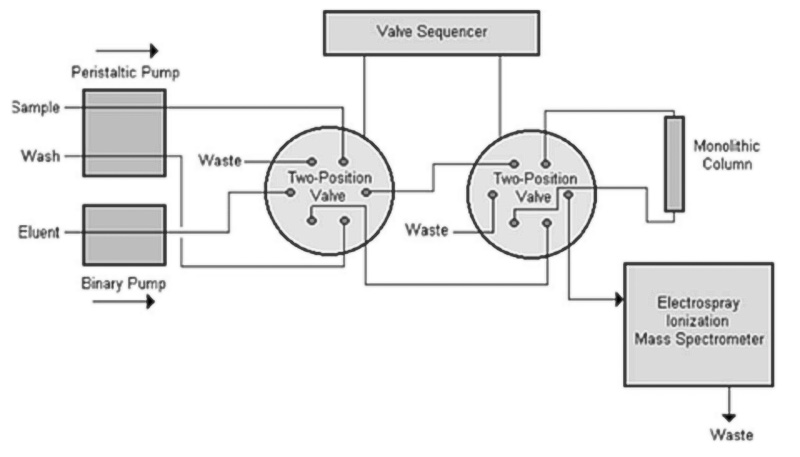 - The ability to load large volumes of sample onto the SPE column. This is accomplished by pFI and SIA systems containing two pumps, one of which is directly connected to a large sample reservoir.