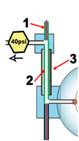 - Two optical fibers (1) which have one end cut square and polished, while the other end is terminated in an SNS connector that is coupled to the light source or the spectrophotometer. It is recommended to use optional 40psi flow restrictor to prevent formation of air bubbles.