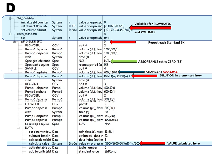 In this way, the flow programming reproduces conditions of manual batch type determination (3.2.4.2. and 3.2.4.3.), thus ensuring that Schlieren Effect is eliminated and monitoring is performed at or close to chemical equilibria – conditions that will minimize influence of ME. These conditions are fulfilled by using autocalibration SSC assay protocol (D) designed to generate five-point calibration in triplicate by linear dilution of the single standard.