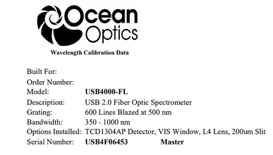 - CCD spectrometer USB 4000-FL Ocean Optics year 2015 slit size 200 µm